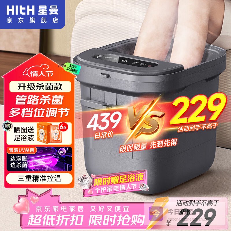 推荐理由:这款HITH足浴盆,自动按摩功能真的挺贴心的,电动滚轮模仿手指揉捏,放松脚底疲劳很到位。一键操作,触控面板简单明了,老人孩子都能轻松用,泡脚变得更方便快捷。