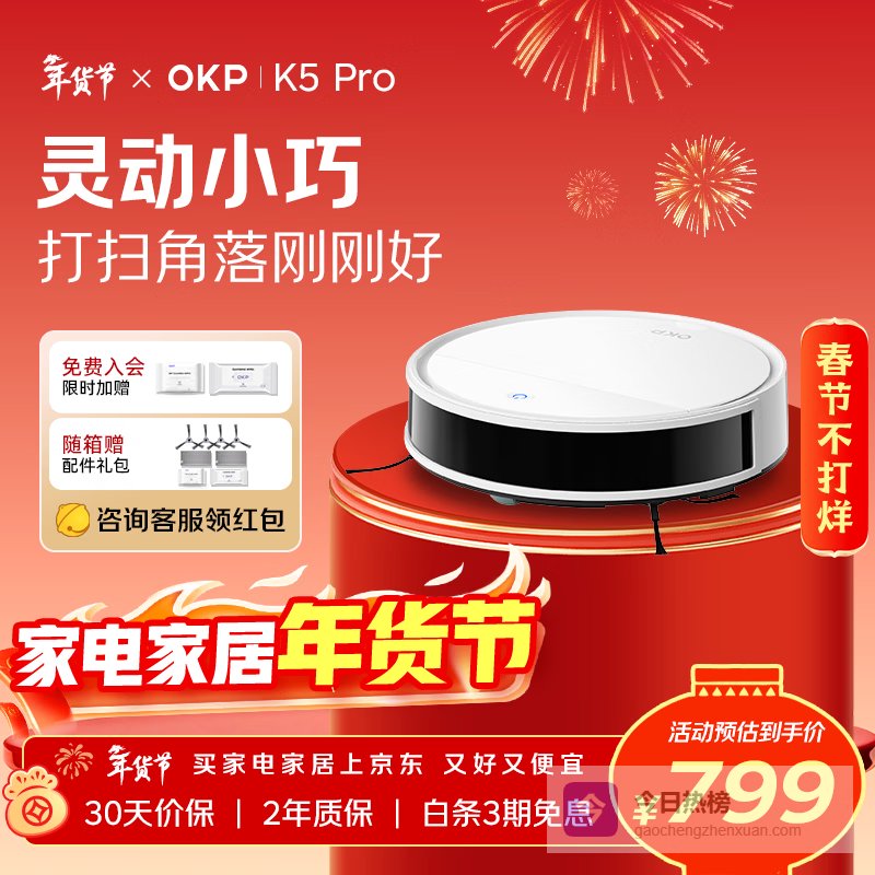 【品牌直营】OKP扫地机器人K5Pro智能家用全自动扫地拖地吸尘三合一体宠物不缠毛发自动回充电¥
