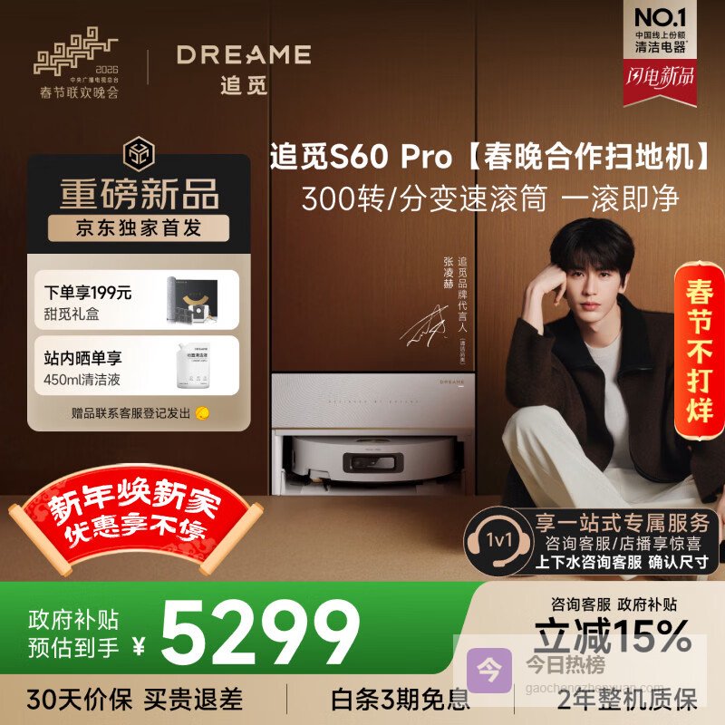 【京东自营】追觅S60Pro扫地机器人扫拖一体自动清洗扫地机洗拖一体拖地洗地一体机【春晚同款】超薄平¥