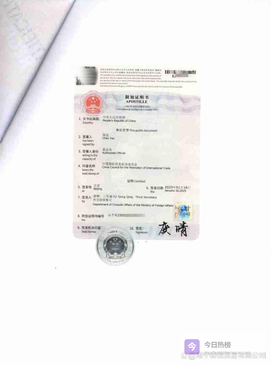 3、认证处理:审核通过后,认证机构对商业发票进行海牙认证处理。处理时间根据机构工作量而定,通常为数个工作日。