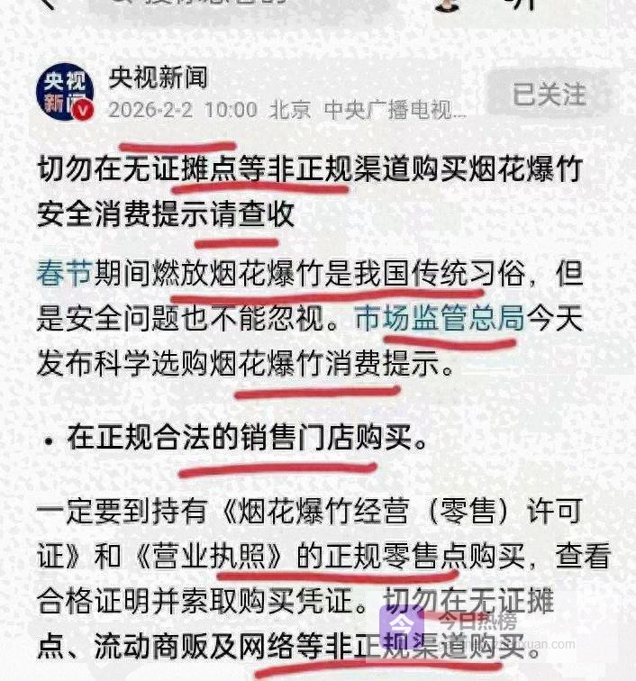 市场监管总局发布消费提示,指导科学选购、安全燃放,明确春节期间是标准交替过渡期,新旧标准产品均可销售,但要认准正规渠道和个人燃放类产品