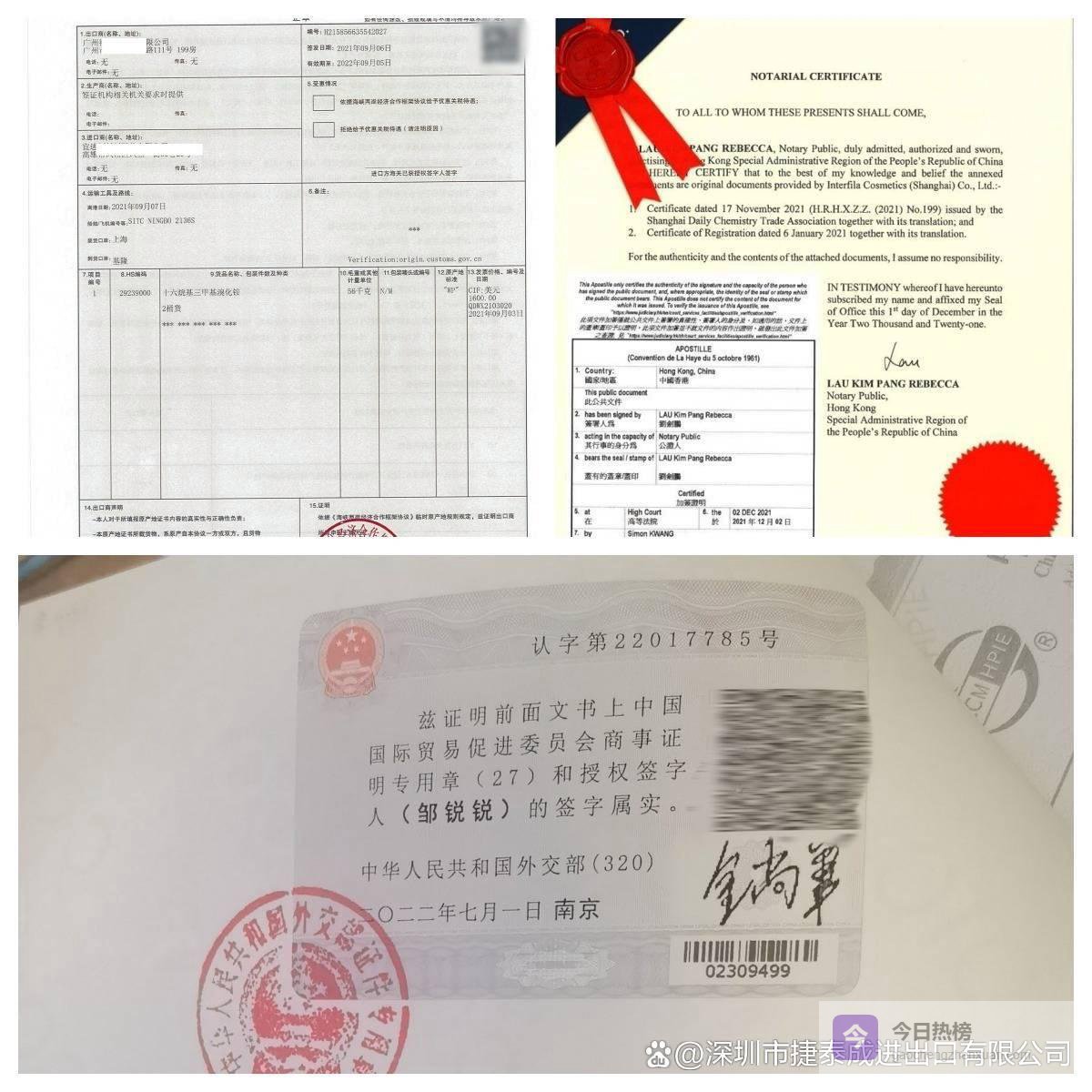 原产地证办理海牙认证 大使馆认证 产地证