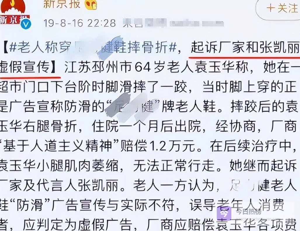 还有大家都认识的演员张凯丽,她代言的足力健老人鞋,广告里吹说“穿上就能防摔倒”。