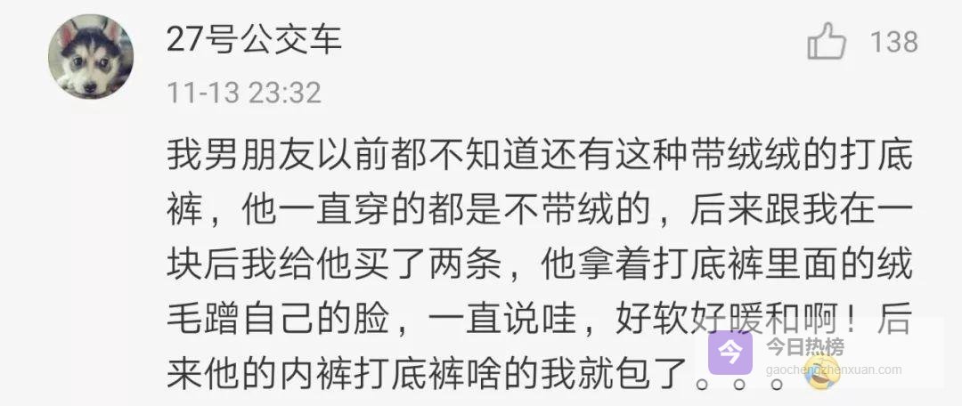 某知名测评号给出结论——“没穿过打底裤的男生人生不完整”。理由很简单: