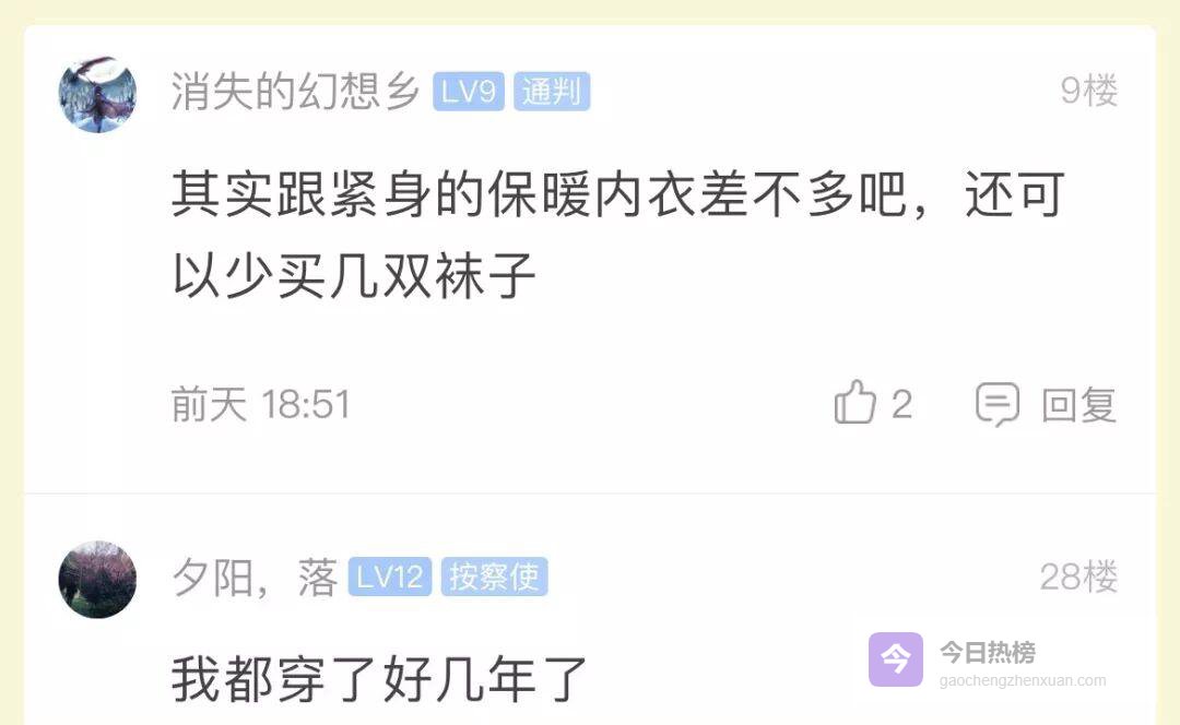 帖子底下,“为什么没人告诉我女生打底裤这么爽?”成了最高赞。有人晒图、有人科普、有人互相安利踩脚款还是连脚款,俨然把论坛开成了冬季保暖研讨会。