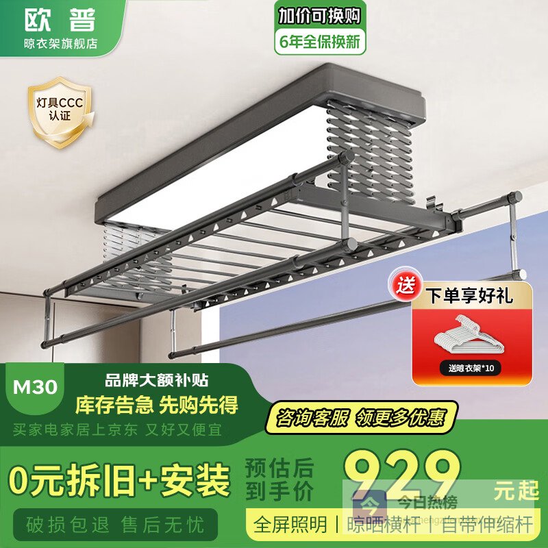 第五款:欧普超薄智能电动晾衣架M30
