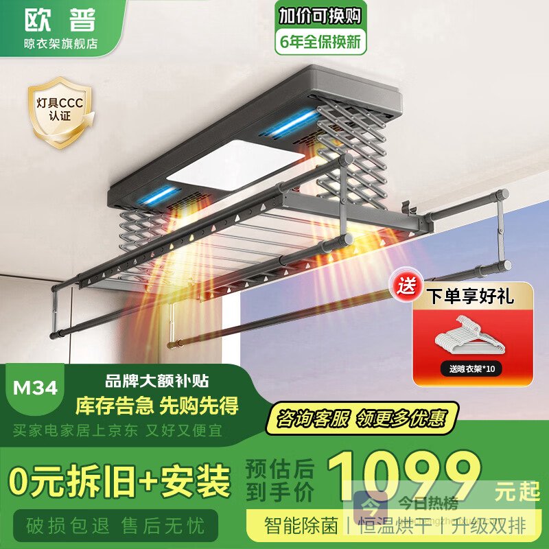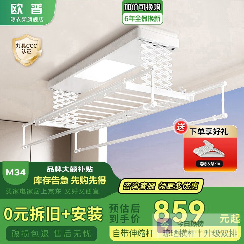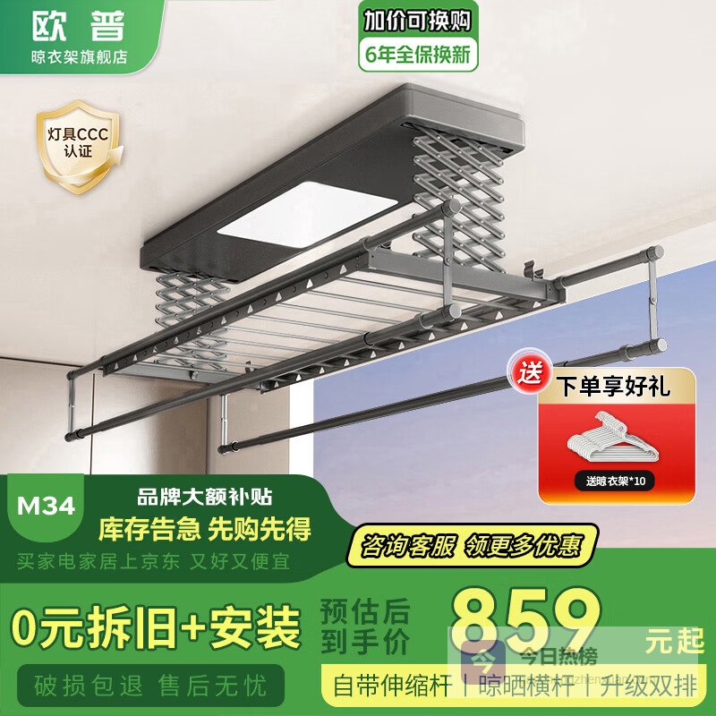 欧普电动晾衣架哪个型号质量好耐用?第一款:欧普超薄智能电动晾衣架M34