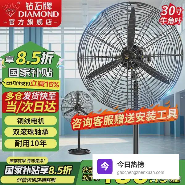 九、钻石牌1️⃣ 大风量输出:这台工业风扇运转起来,风力特别强劲,大风量能快速带走闷热空气,特别适合厂房、车间或者大型空间用,不管多么闷热,都能帮你降温到舒服的状态。