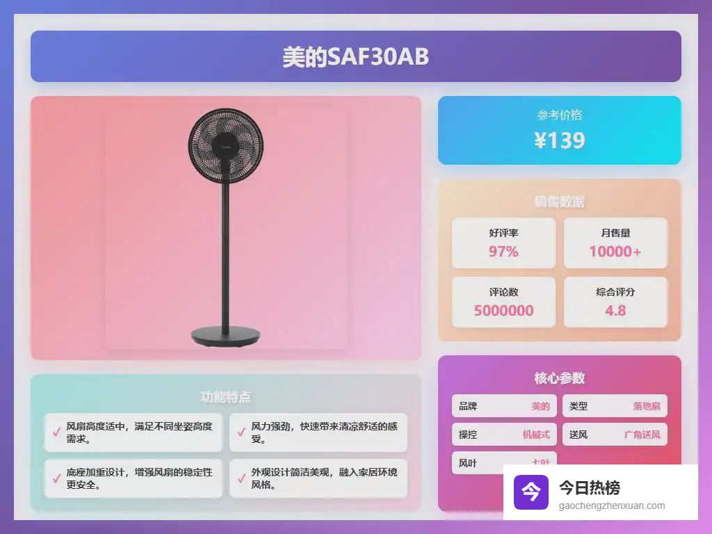 所以,为了解决大家的困惑,我特意花时间整理了一份接地气的落地扇选购攻略。毕竟,谁不想在炎热的天气里,拥有一个凉爽舒适的环境呢?挑选落地扇,不只看牌子,更要看它的实际性能和使用体验。有些小众品牌,可能价格不高,但用料扎实,风力强劲,反倒比一些大牌更划算。下面给大家挑了10款,感兴趣的可以了解下,希望能给大家一些参考。