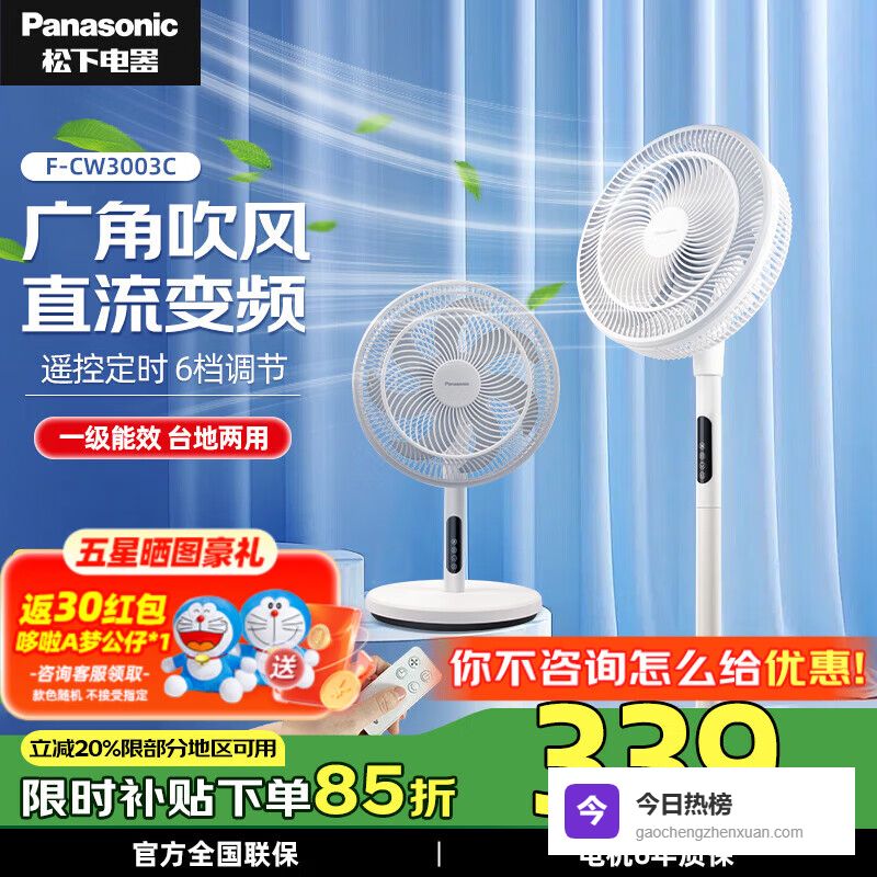 松下(Panasonic)风扇电风扇落地扇 直流变频一级能效家用节能电扇 磁吸遥控柔风定时静音风扇 新款【直流变频】F-CW3003C¥