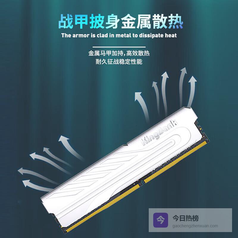 ▶ 金属马甲散热:内存条配备厚度为0.8mm的金属马甲散热片,能快速带走热量,确保长时间高强度使用时的稳定性。散热效果好,耐用性也更强,让你用得更放心。