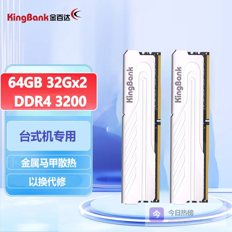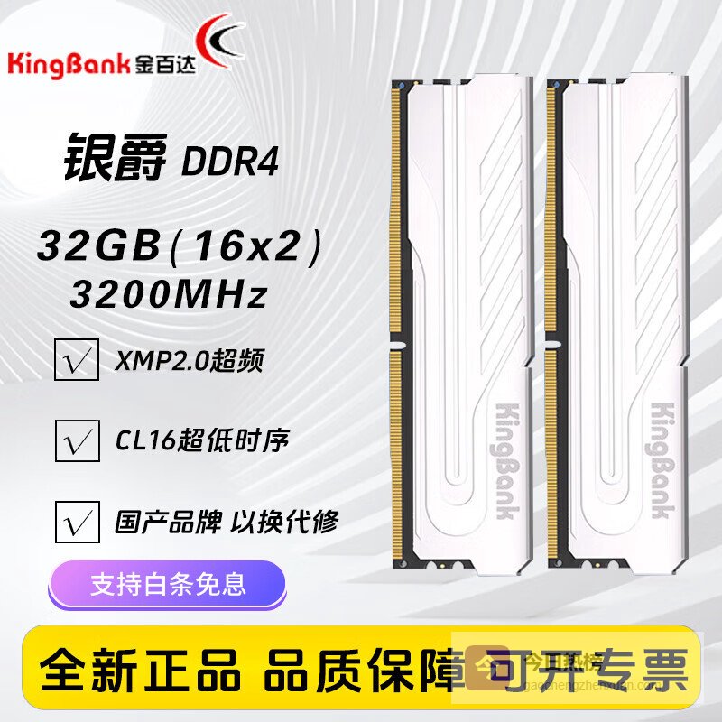 金百达(KINGBANK)银爵DDR4 台式内存条 长鑫颗粒 办公 游戏 电竞银爵3200 16G-8GX2 16GX2套装3600 银爵64G【32G×2】3200¥