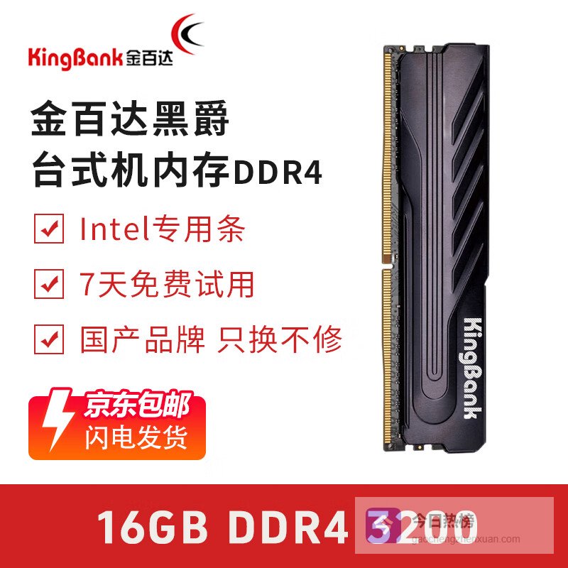 金百达(KINGBANK)8g x2黑爵3600 16x2内存条ddr4 2666 8gx2游戏内存3200 16g马甲条Intel专用条 黑爵 16G 3200 单条【Intel专条】¥