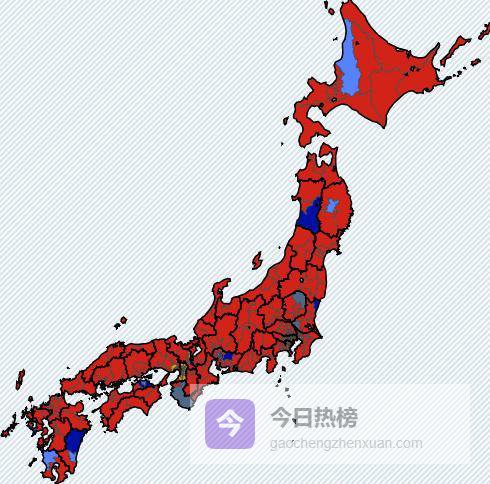 日本众议院选举情况图:红色为自民党 NHK