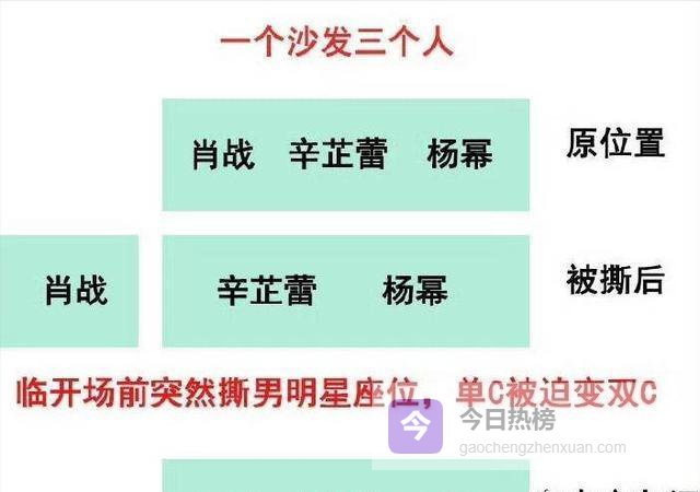 下午两点,主办方公布的座位图还很清楚:二排长沙发——辛芷蕾坐中间,肖战、杨幂分列两侧,辛正对着曹国伟。三点的现场视频也在印证那张图,牌子摆得规规矩矩。可不到一小时,画面就开始走样:有人拍到肖战那块名牌不见了,台上只剩辛、杨两块牌并排贴着,三座沙发像被“切”成两座,原本的对称被打破。到了傍晚,热搜就炸开了:小红书、超话里都是截图、催位、求说法;杨幂工作室在官微的简短九字评论——“请主办方说明座位安排”——看似冷静,却分量十足。