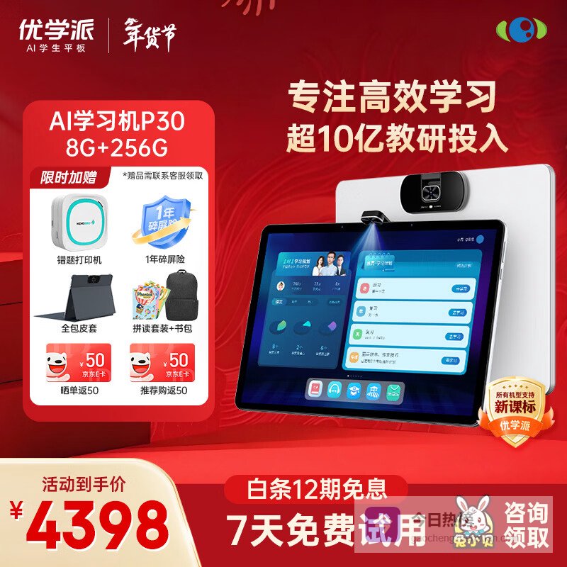 推荐理由:优学派AI学习机P30,简直就是学习小能手!它拥有12.2英寸的大屏幕,分辨率高达2K+,护眼效果一级棒,长时间学习也不累眼。还有AI作业检查功能,拍照就能秒出结果,作业难题一扫即解,简直太方便了!更别提还有清华、北大的老师亲自授课,数学、语文、英语,各个学科都能学到精华,学习效果杠杠的!