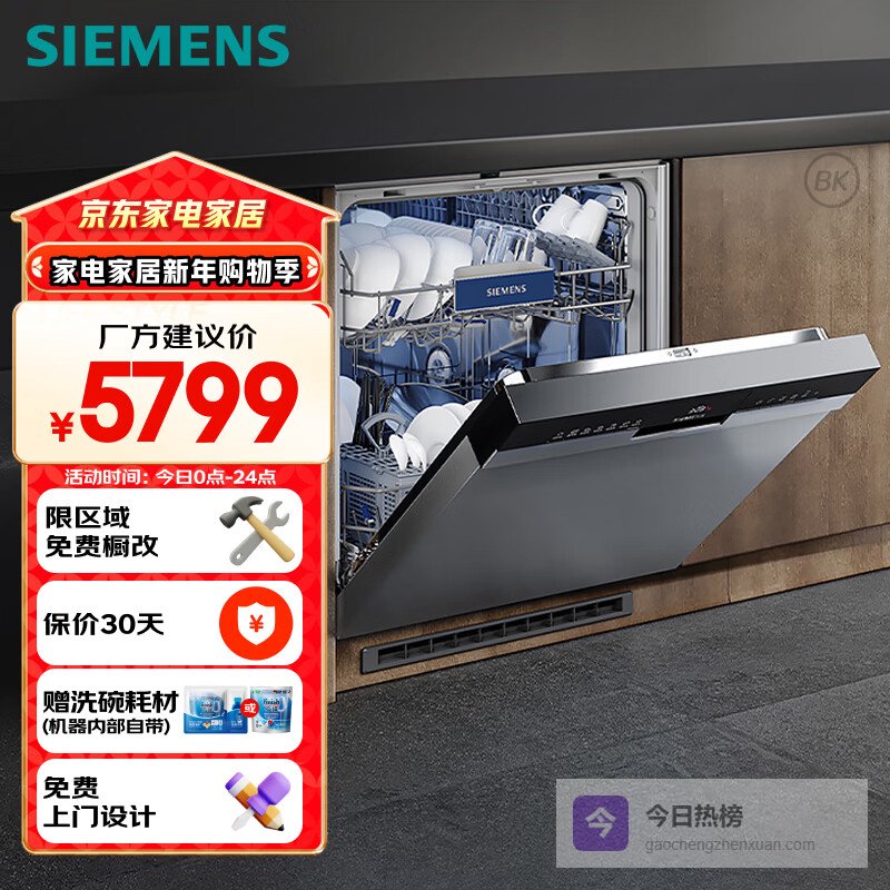 西门子SJ43HS00KC,14套嵌入式全能舱洗碗机,精准涡流洗,动态环流烘干,96小时存储,智能除菌消毒。