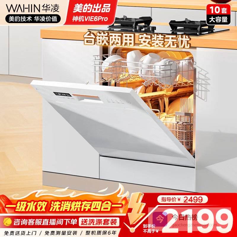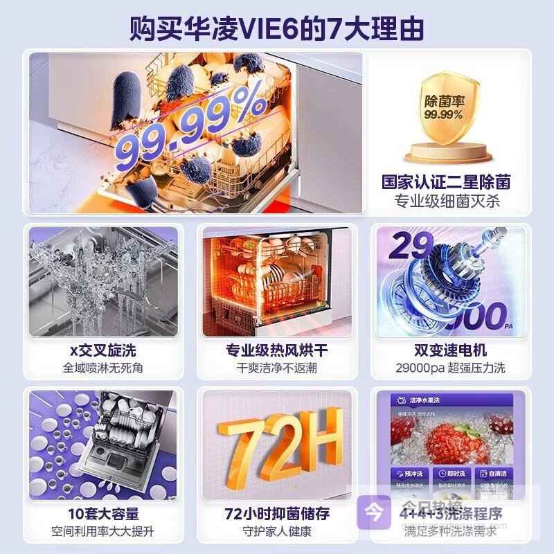 华凌Vie6 Pro洗碗机嵌入式 一级水效热风烘干消毒旗舰款10套灶下洗碗机 除菌率99.99%家用¥