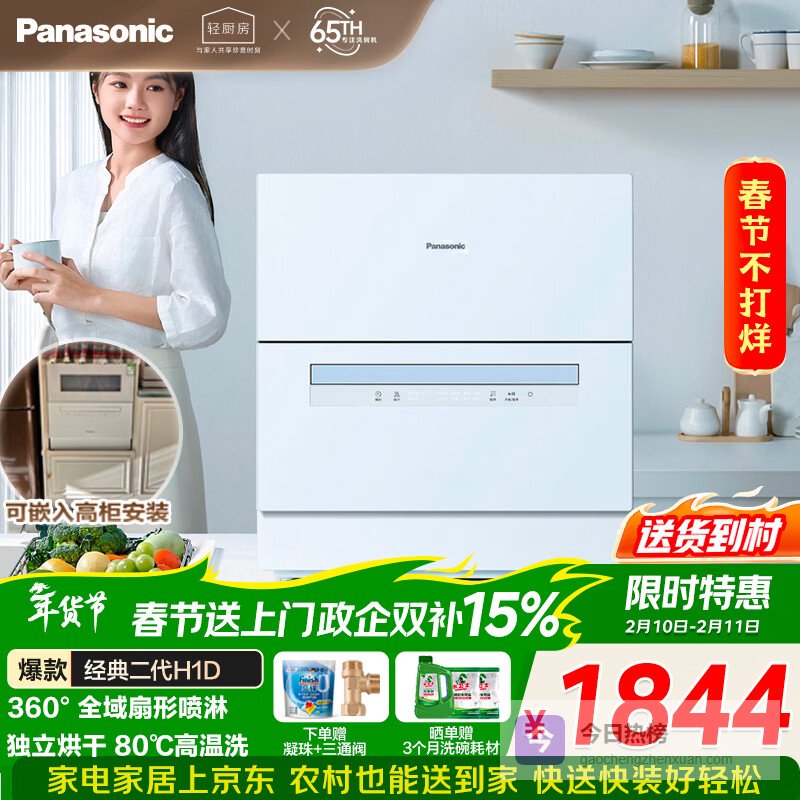 松下(Panasonic)台式洗碗机二代H1D【小尺寸大容积58L】独立烘干 80℃高温除菌 洗烘一¥