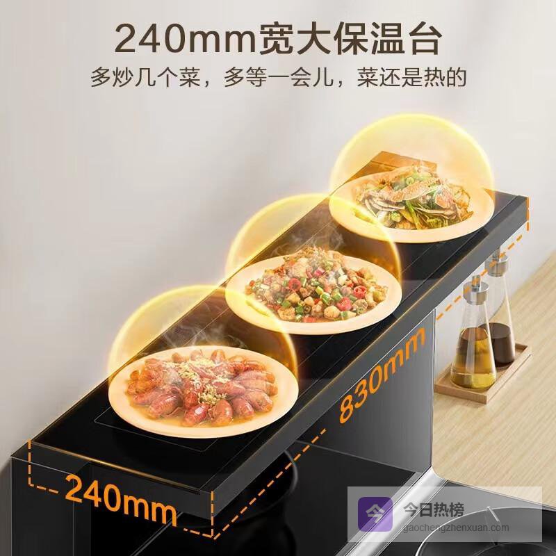 设有独特的恒温置物台,无需再担心热菜转瞬变冷的问题,贴心的设计让你的美味保持温热,随时准备上桌。并且,采用高效吸油烟解决方案,优化了25-30cm黄金拢烟区域,确保下排式吸烟功能充分发挥,创造舒适的烹饪体验,轻松应对双灶同时烹饪的需求。