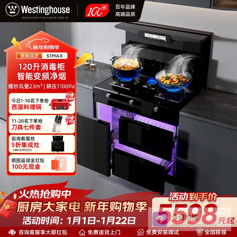 【品牌直营】西屋西屋集成灶消毒柜油烟机燃气灶一体式集成灶JJZT-S1MAXS1MAX三门保洁柜双向¥