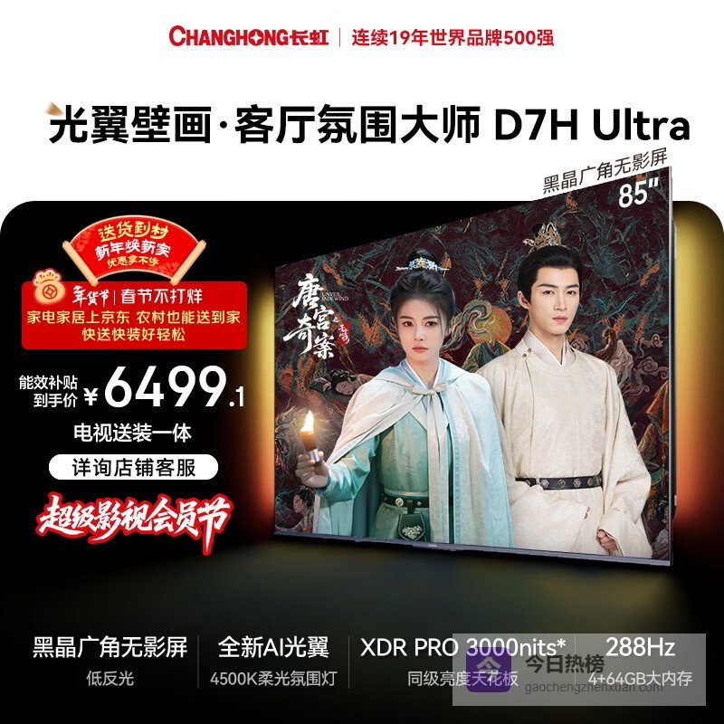 长虹高端款 长虹电视85D7H Ultra黑晶屏85英寸【包安装】Miniled氛围大师 AI光翼壁¥