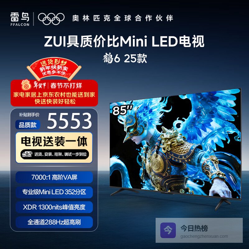 TCL雷鸟 【固定挂架送装一体】鹤6 25款 85英寸MiniLED 288Hz高刷 一级能效电视机¥