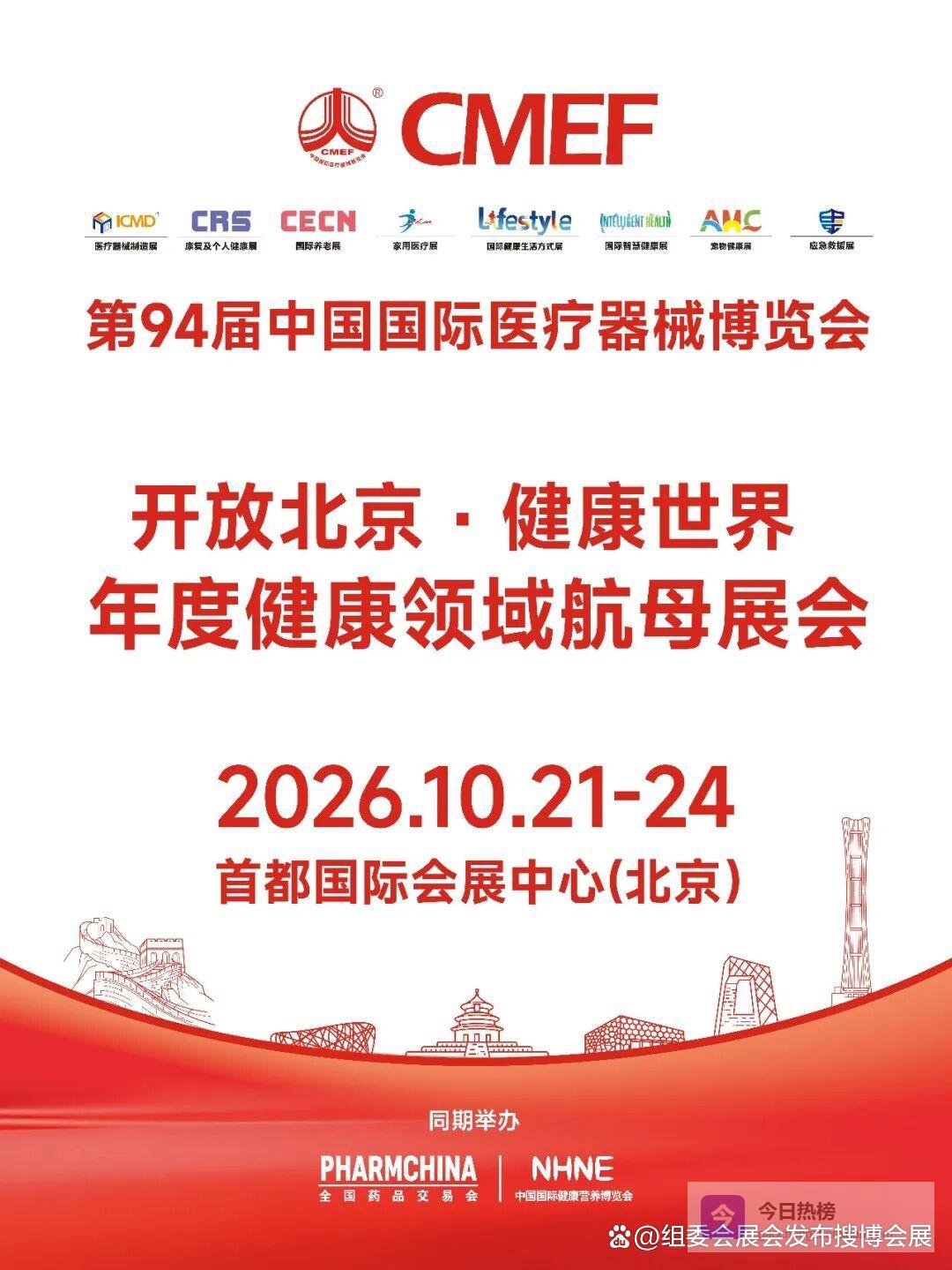 近日,第94届中国国际医疗器械博览会(CMEF)组委会正式官宣:2026年秋季CMEF医博会定档10月21日至24日,于北京首都国际会展中心(北京市顺义区裕翔路88号) 隆重举办。作为全球医疗器械领域标杆性盛会,本届展会首次选址首都北京,标志着CMEF“南北联动”战略全面落地,引发行业高度关注。