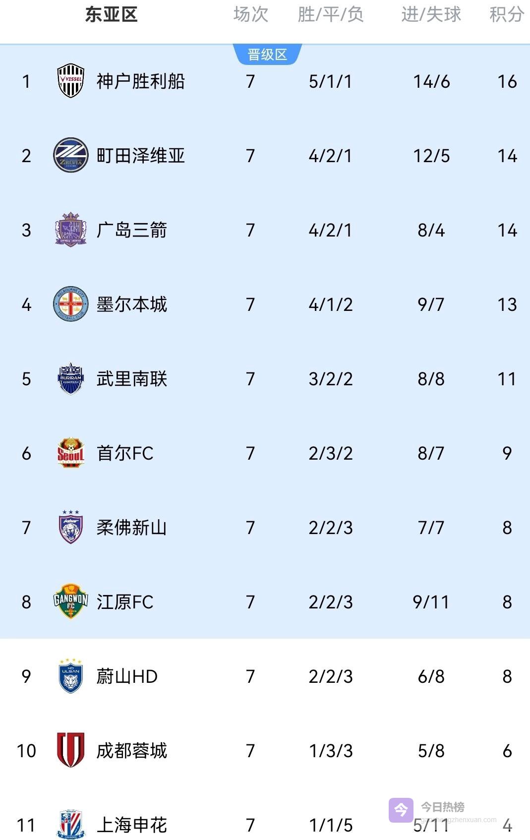 这两场比赛一结束,亚冠精英联赛东亚区第七轮后的积分榜瞬间清晰了。