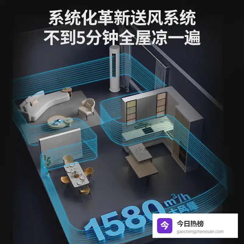 全域舒适风感:具有1580m/h大风量及上下左右送风配置,确保每个角落都能快速享受到理想温度。