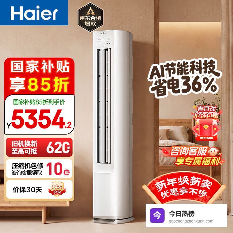 【京东自营】海尔空调净省电大3匹新一级变频冷暖客厅立式空调柜机双排铜管家电国家补贴以旧换新KFR-7¥