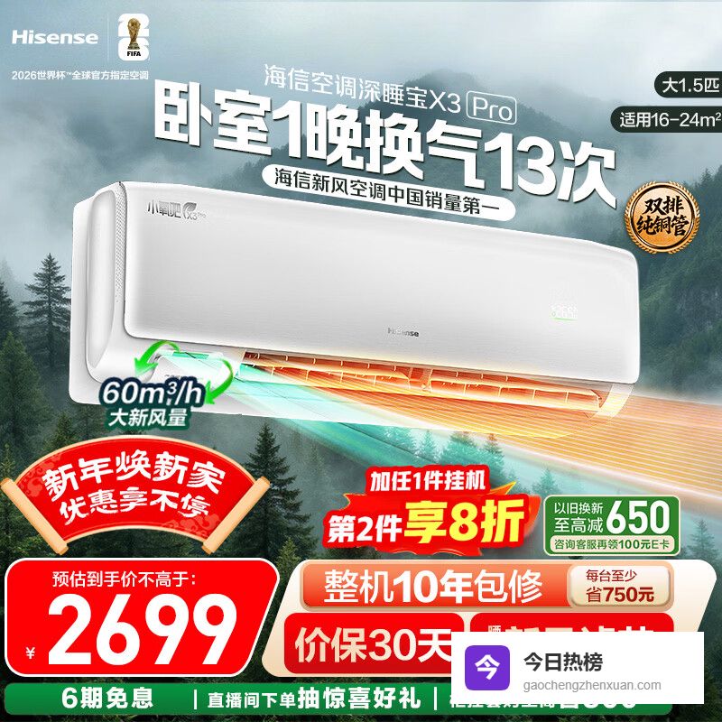 【京东自营】海信新风空调深睡宝X3Pro大1.5匹增氧新风AI省电双排铜管1级能效挂机KFR-35G¥