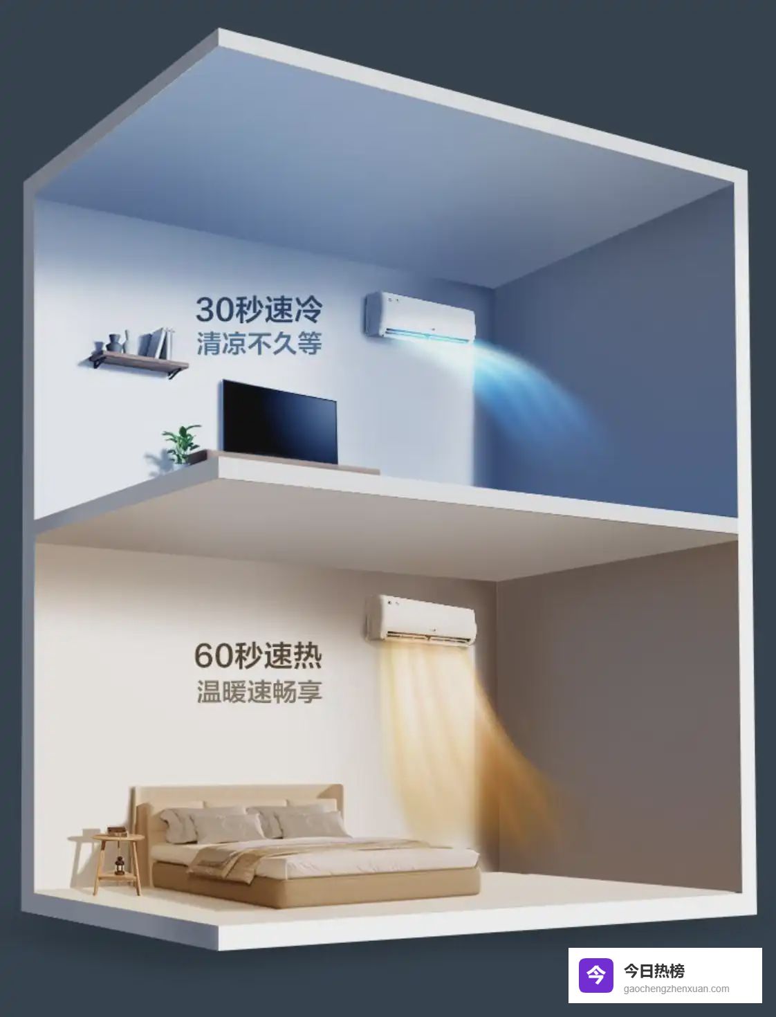 瞬间冷暖:快速制冷仅需30秒,制热也能实现60秒速热,确保在极短时间内享受理想舒适温度。