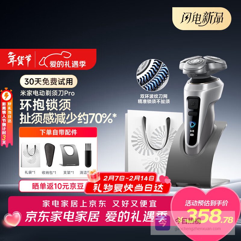 【京东自营】米家电动剃须刀S302专属礼盒小米旋转式刮胡刀双环弧面刀网浮动贴面剃须送男友情人节礼物推¥