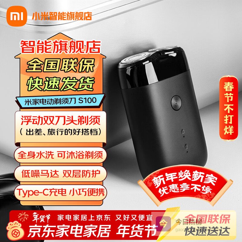 【品牌直营】米家小米电动剃须刀S100小巧便携刮胡刀Type-c充电全身水洗低噪音可上飞机情人节礼物¥