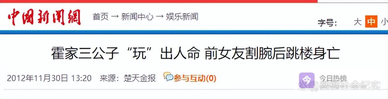 中国新闻网——霍家三公子“玩”出人命 前女友割腕后跳楼身亡
