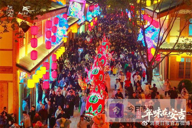 仪式结束后,嘉宾与游客沉浸式体验安吉年味:章村竹竿舞、马村舞狮、梅溪旱船轮番上演,国遗化龙灯实景演艺尽显非遗魅力,热闹非凡。非遗市集上,鄣吴竹扇等非遗展品琳琅满目,吴均汤包等特色美食香气扑鼻,打糍粑等互动项目吸引众多游客参与,欢声笑语中满是年俗乐趣。