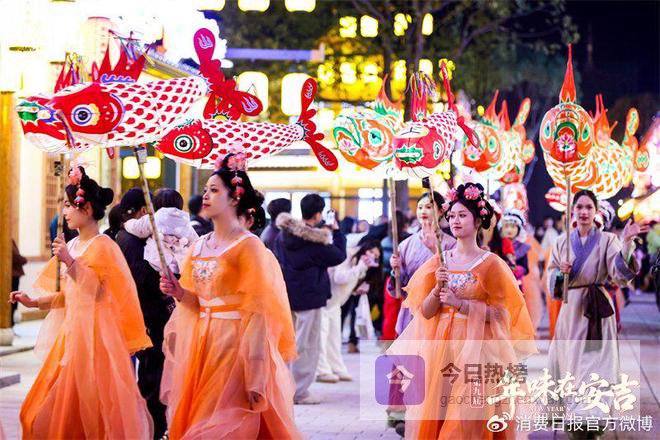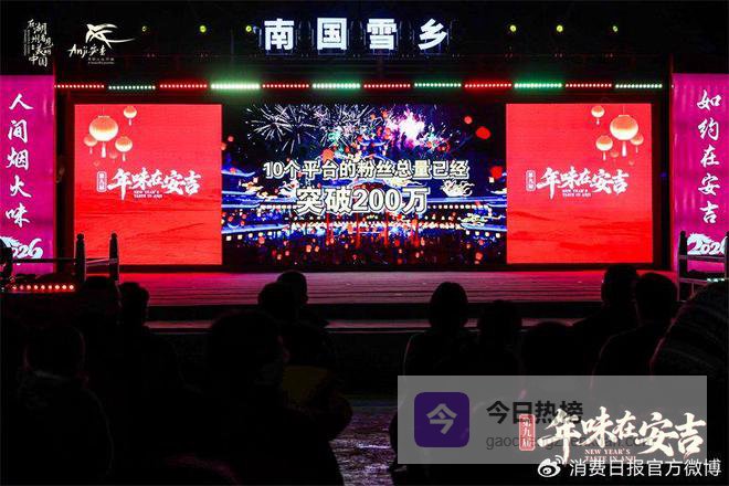 小年之夜的景区灯火璀璨,亮点纷呈。晚18时,县文化馆舞蹈《华灯扇影舞新春》率先登场,传递新春喜悦;县领导致辞回望品牌九年成长,寄语“南国雪乡”IP发展。现场播放的“年味在安吉”主题视频,再现了各地年俗盛景;同时传来喜讯——安吉文旅数字传播矩阵10个平台粉丝总量突破两百万,彰显大众对安吉文旅的认可。