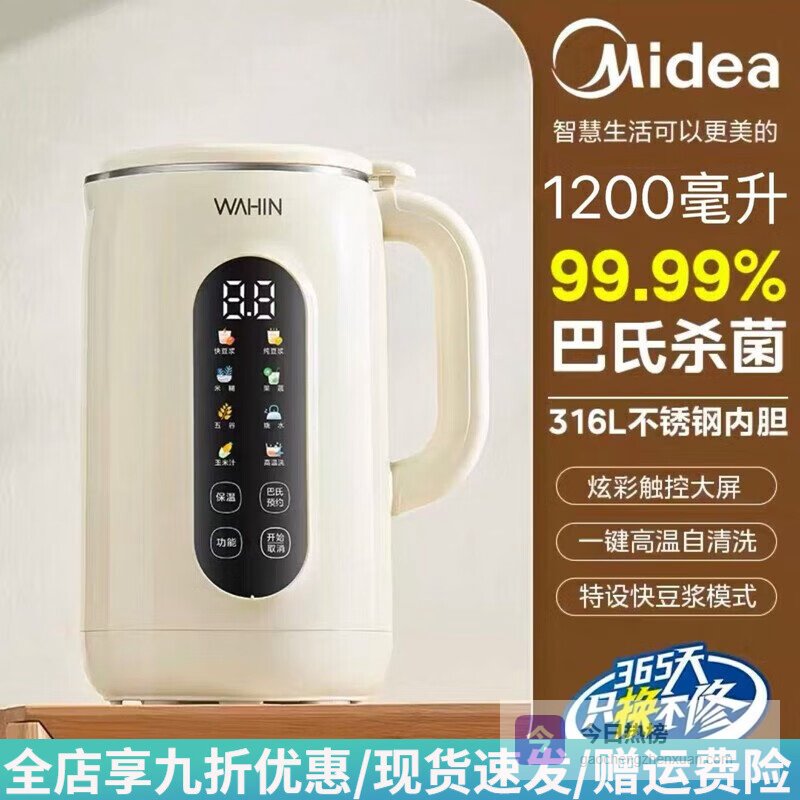 华凌DJ2破壁机家用豆浆机多功能自动预约316L不锈钢内胆【1200毫升】巴氏消毒/触控屏/三一六L¥