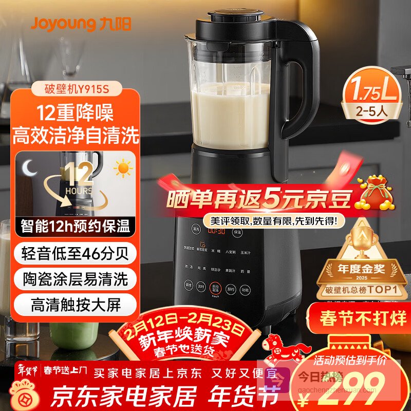 【京东自营】九阳破壁机家用轻音全自动多功能降噪预约豆浆机榨汁辅食机1.75L五谷杂粮3-5人金榜补贴¥