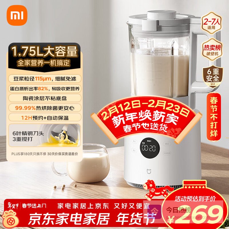 【京东自营】米家小米破壁机N1多功能豆浆机榨汁料理儿童辅食机全自动清洗免煮免过滤大容量1.75升¥