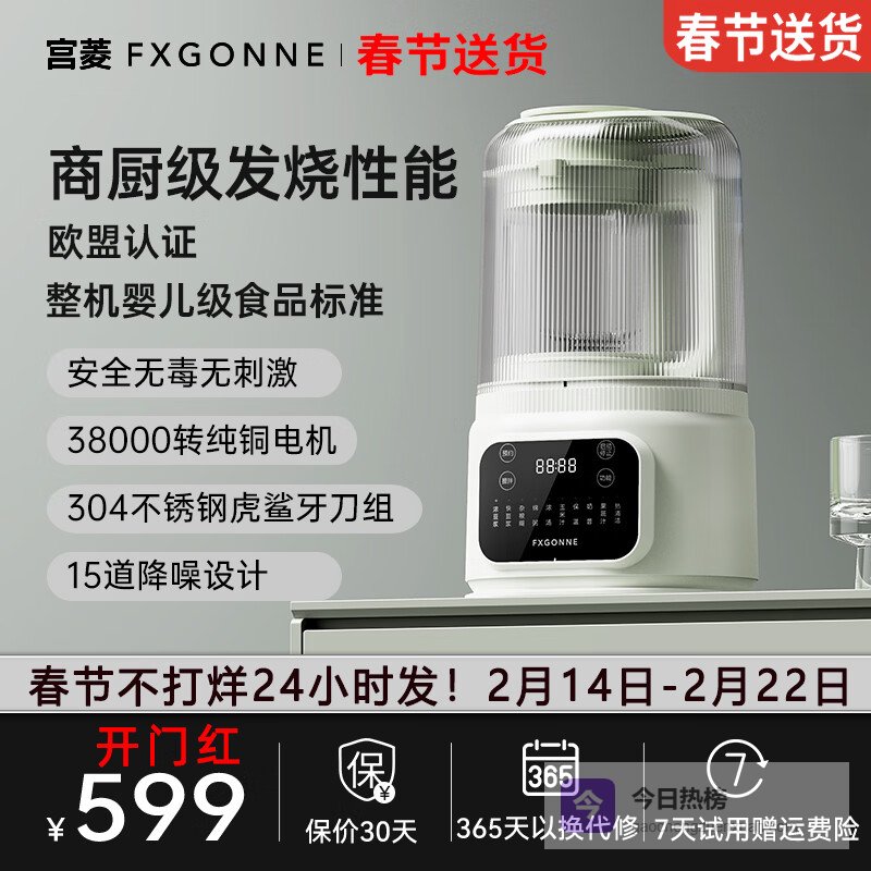 【品牌直营】宫菱破壁机轻音家用大容量智能预约高速豆浆榨汁机打汁机NEO欧盟认证款¥