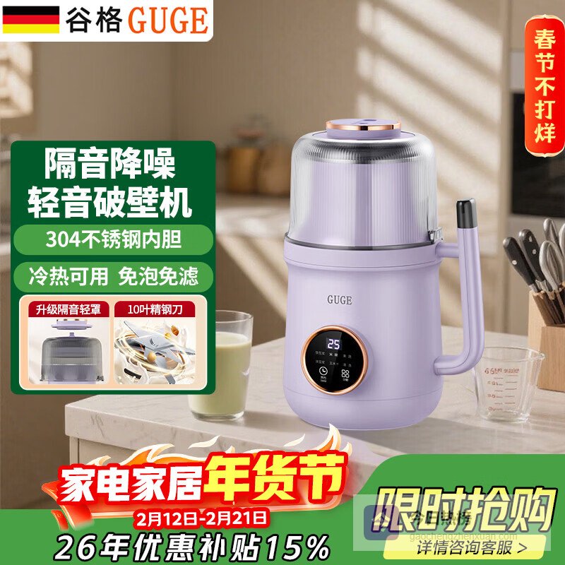 【京东自营】谷格德国2025新款迷你破壁机家用豆浆机降噪低音料理机小型1-2人全自动免煮五谷杂粮早餐¥