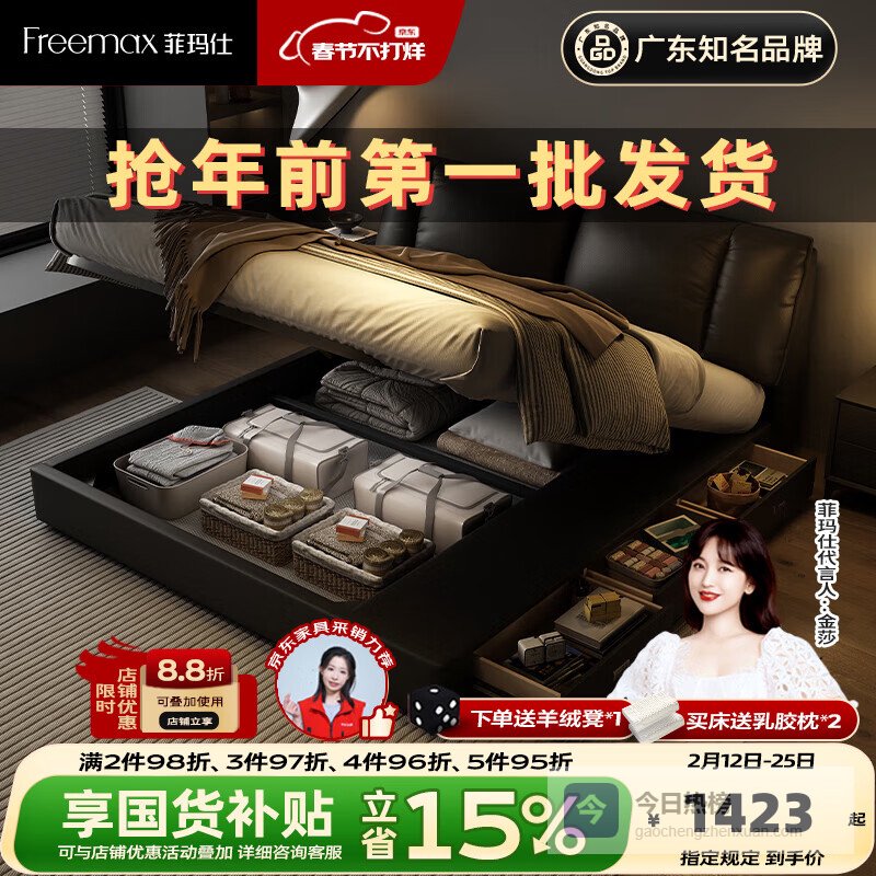 菲玛仕(freemax)意式真皮床头层牛皮实木床1.5米主卧大床极简小户型双人床993三抽 1.8mm加厚头层牛皮单床 【金莎推荐】橡木满铺静音排骨架 1.5*2m框架¥