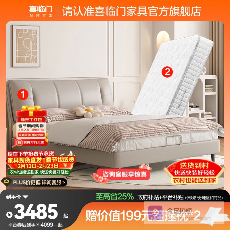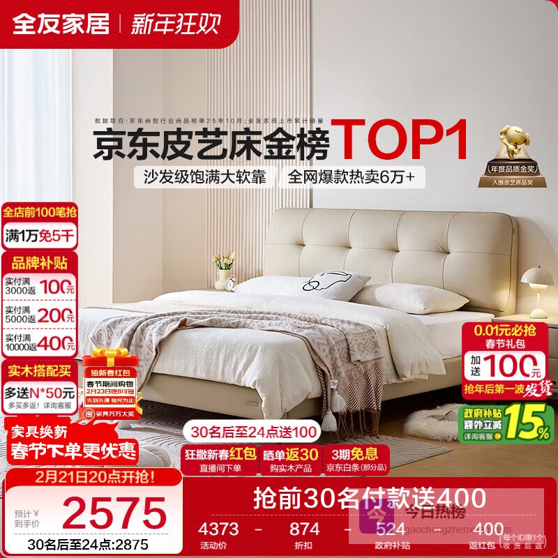 推荐理由:这款全友皮艺床用的沙发级双料软靠背,躺着坐着都觉得特别舒服,特别适合喜欢在床上放松的人。床头的牛皮和猫抓皮选择多,可以根据家里风格挑,手感柔软,又耐用,用得放心。