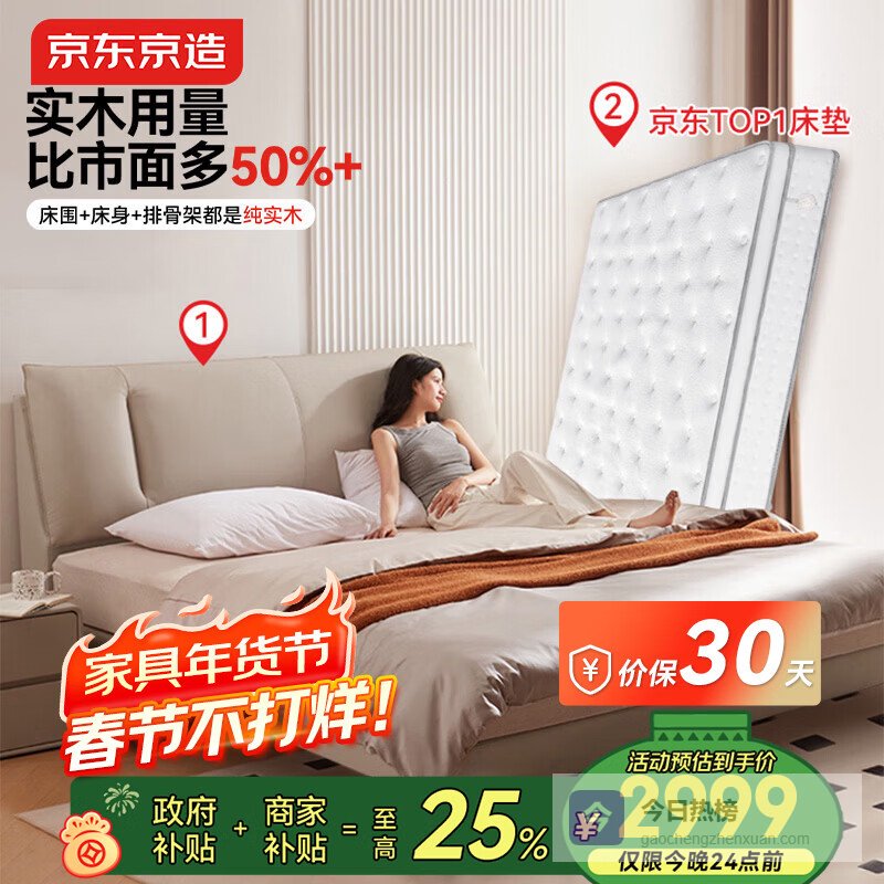 京东京造家居大黑牛真皮床套装 荷兰头层牛皮 软硬两用弹簧床垫1.8×2米白¥