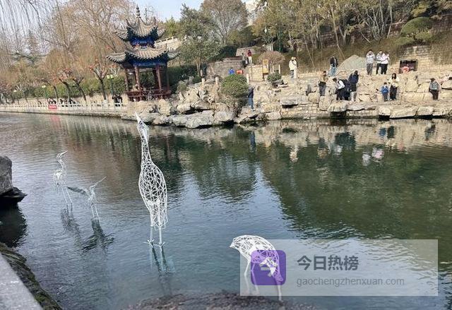 别看只是玻璃钢喷镀,羽毛根根立起的细节卷到让人怀疑人生。设计师偷了个巧:把底座藏在水下5厘米,潮水刚好没过脚面,远远望去像踩水即飞。手机随手一拍,湖面自带柔焦,滤镜钱直接省掉。冬天护城河不结冰,黑虎泉一路冒热气,白鹭身上凝一层薄雾——仙气外挂一秒加身。