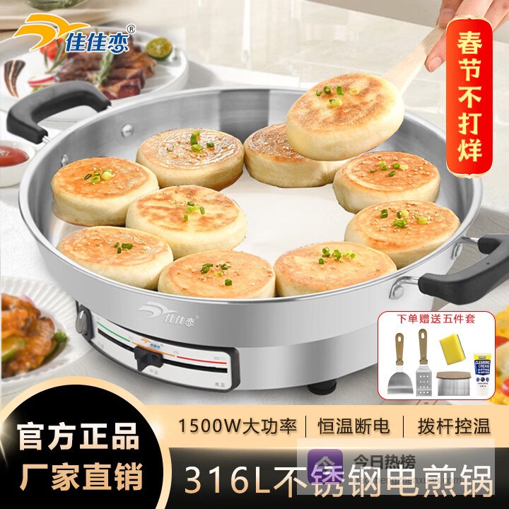 【品牌直营】佳佳恋电饼铛316不锈钢家用加深加大新款电煎锅官方旗舰店烙饼平底多功能无涂层火力可调电火¥