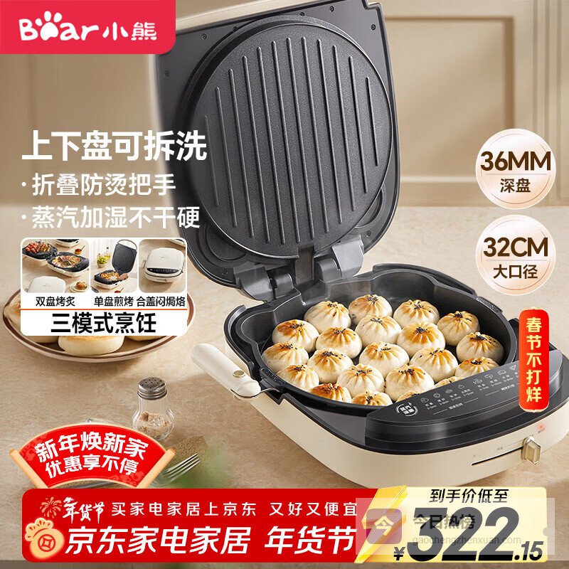 【京东自营】小熊电饼铛家用煎烤机双面加热双盘可拆洗三明治早餐机煎饼锅36mm加深烙饼锅折叠防烫把手D¥