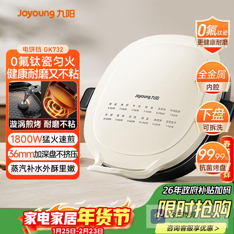 【京东自营】九阳电饼铛三明治机早餐机36mm加深烤盘0氟钛瓷超耐磨少油下盘可拆漩涡加热大火力烙饼锅G¥